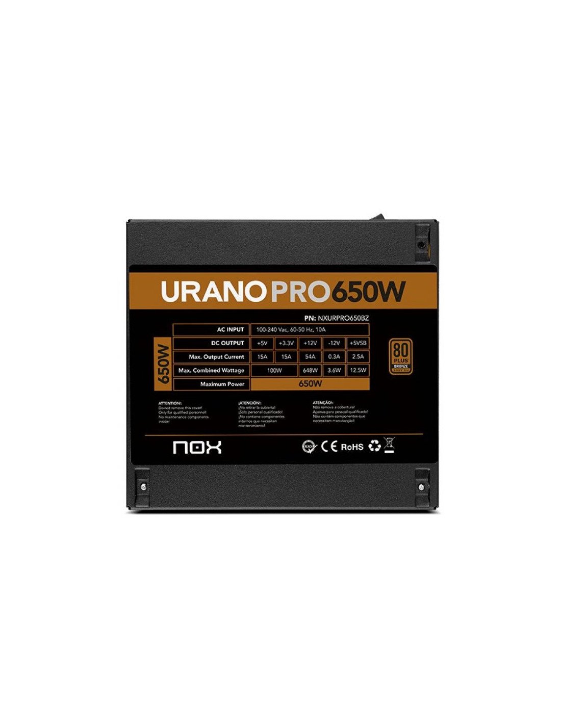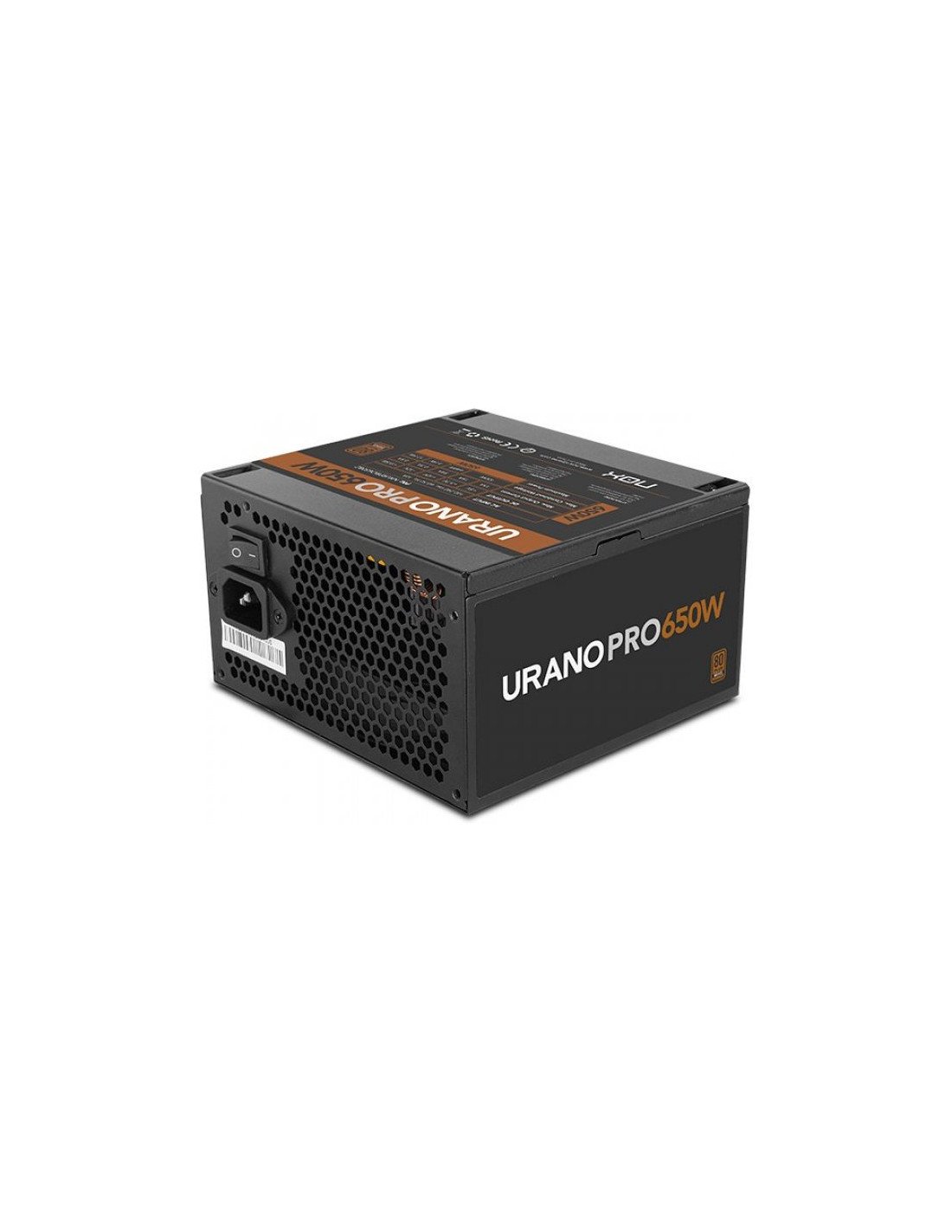 Fuente de alimentación de 650W con certificación 80 Plus Bronze, pensada para ofrecer un funcionamiento eficiente y estable. Incorpora un ventilador de 120 mm ultrasilencioso con control PWM, que regula automáticamente la velocidad para mantener una buena refrigeración con bajo nivel de ruido.